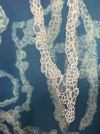 A Scientific Fable is what we think we know of life. The life in the sea is mostly known to us via films and images created for us by others working in the Media. We have so much to learn as the oceans are and should be teeming with life. I am interested in ocean spaces that are dominated by simple cell organism and algae. What is simple is essential to life. As humans we are dependence on algae but disregard that fact. The Limestone Coast, the Great Southern Reef is the most diverse seaweed ecosystem in the world. These ecosystems deserves our attention and through artwork the wonder of the ocean world becomes more accessible to land locked humans . What follows are seaweed and beach studies. Works are created using cyanotype, ink and gouache on paper.
